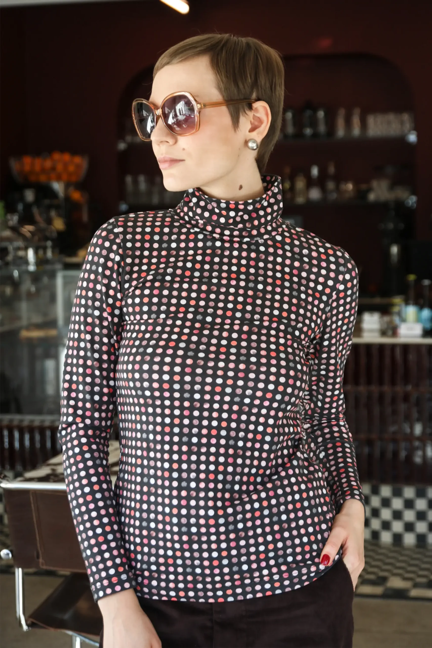 Klasyczne kropki w artystycznym wydaniu sprawią, że nawet codzienny look nabierze wyjątkowego charakteru. A wszystko to w ponadczasowej formie golfu.