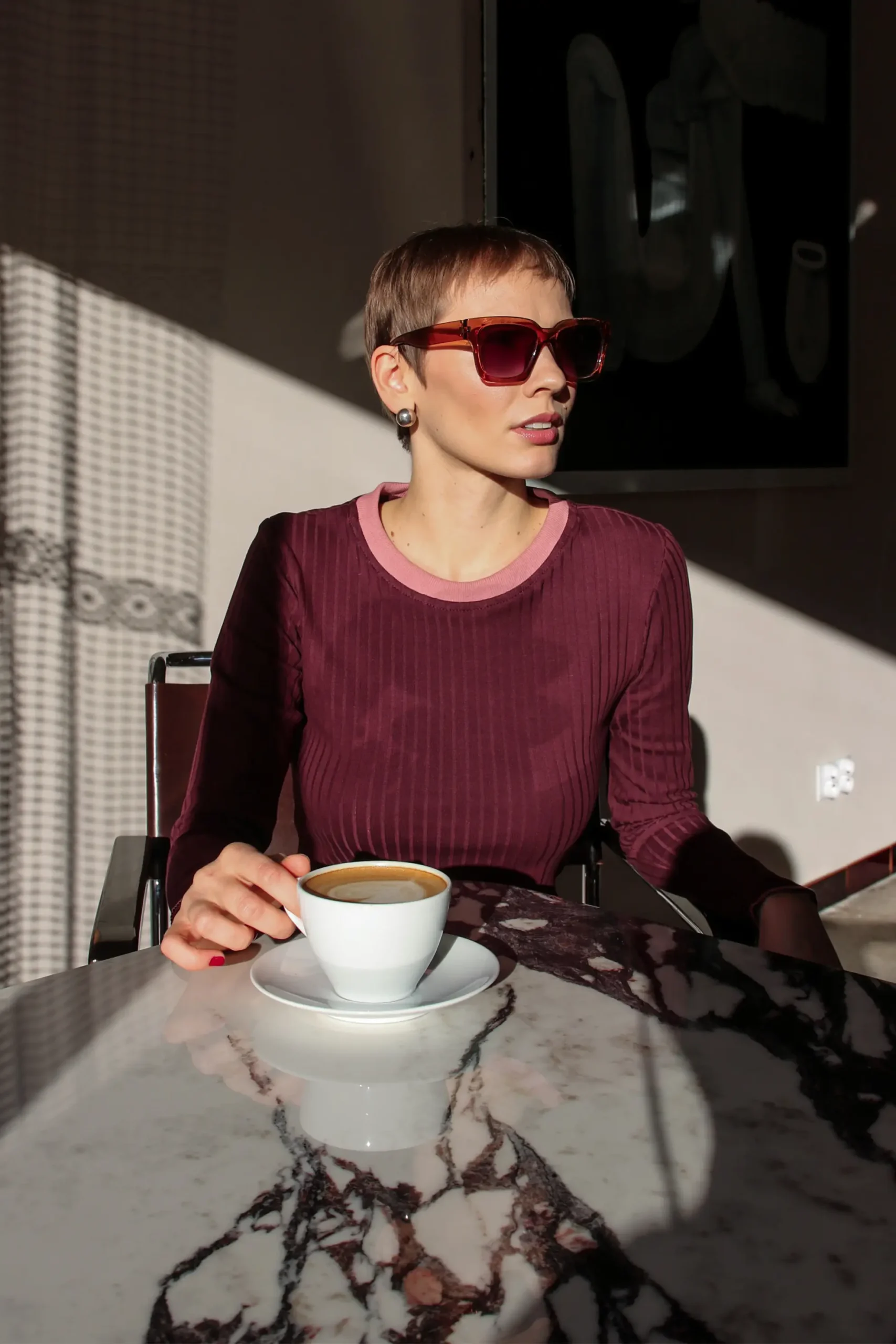 Bordowy longsleeve z wysmakowanym twistem. Uszyty z prążkowanej, oddychającej bawełny, zapewnia pełen komfort od rana do wieczora. Różowy ściągacz przy dekolcie dodaje całości świeżości i sprawia, że klasyczny fason nabiera wyjątkowego charakteru.